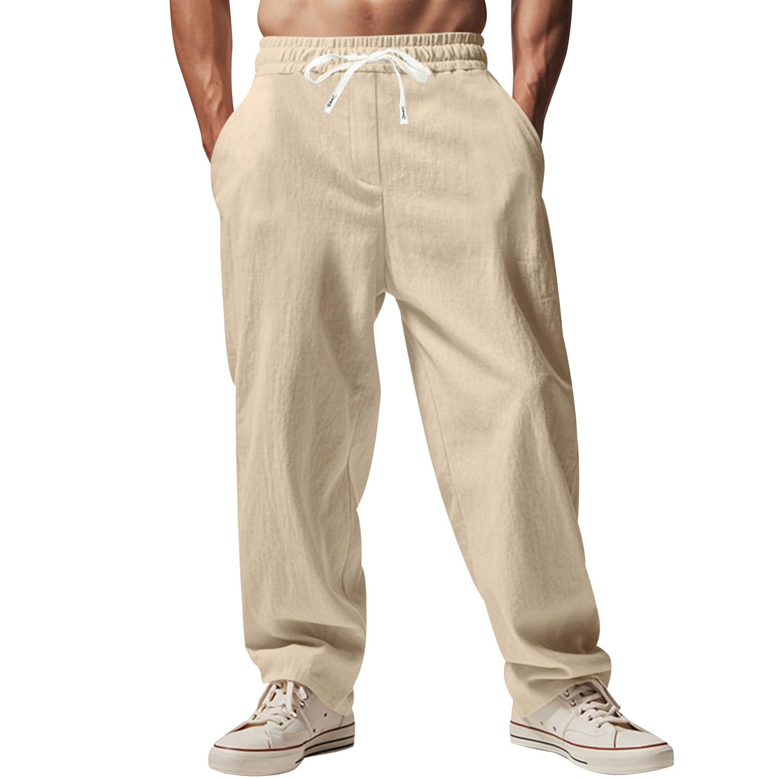 Alivebody Mens Linen Pants Straight-Legs Elastic Waist Casual Summer Beach Pants Drawstring Lightweight Trousers with Pockets